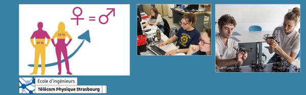 En 2025, l’attractivité de la filière TI Santé auprès des étudiantes reste forte et la filière généraliste reste au dessus de la moyenne nationale, même si l’on constate une lègère diminution de la part des étudiantes cette année. La filière par apprentissage (FIP ESN) montre des fluctuations importantes du fait des effectifs réduits chaque année, les chiffres ne sont donc pas représentatifs, en revanche la filière Informatique et Réseaux (IR) affiche une remarquable progression de la part d’étudiantes. Le recrutement en septembre 2025 dans la filière IR atteint 25% contre 6% en 2021 et ce, malgré la réforme du lycée qui conduit seulement 5% des élèves de terminale à suivre la spécialité NSI (numérique et sciences informatiques) avec seulement 15% de lycéennes dans cette spécialité. Les enseignants et les enseignantes de l’école s'engagent dans la promotion des sciences de l’ingénieur, dont l’informatique, auprès des élèves de collège et de lycée afin de lutter contre les stéréotypes de genre et les sensibiliser au fait que les études ingénieures sont accessibles et ouvertes à tous et toutes.