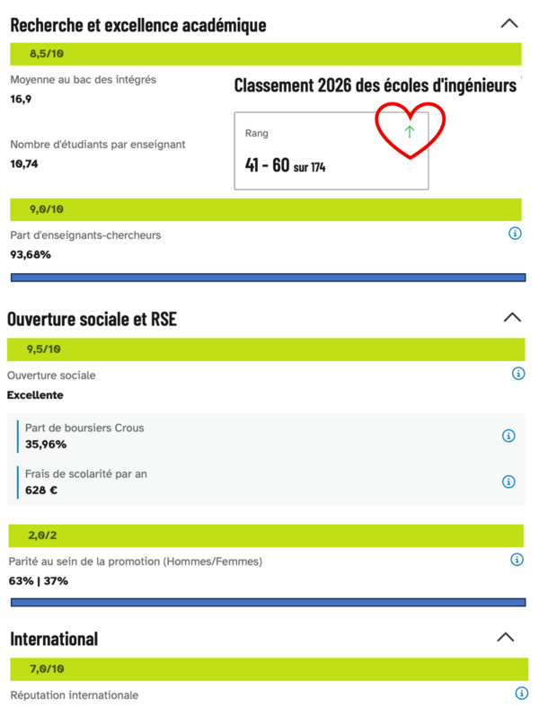 Côté chiffres, TPS intègre le groupe 41-60 des 174 écoles d'ingénieurs classées, en progression par rapport à l'an dernier.